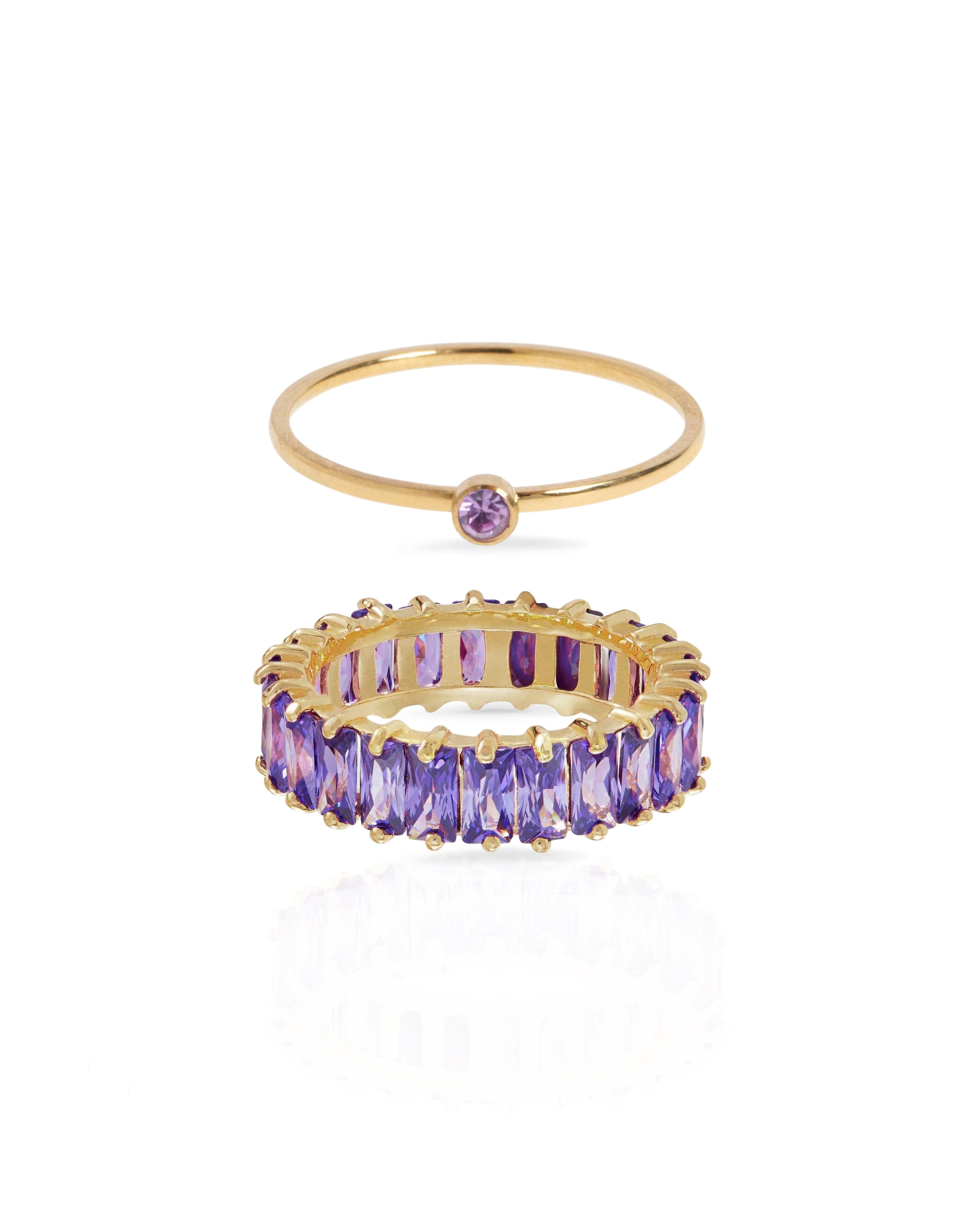 Dos elegantes anillos que combinan brillo y color. Perfectos para lucir juntos o por separado, aportando un toque sofisticado a tu look.