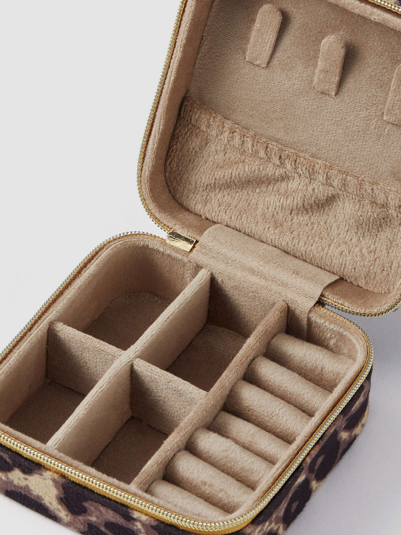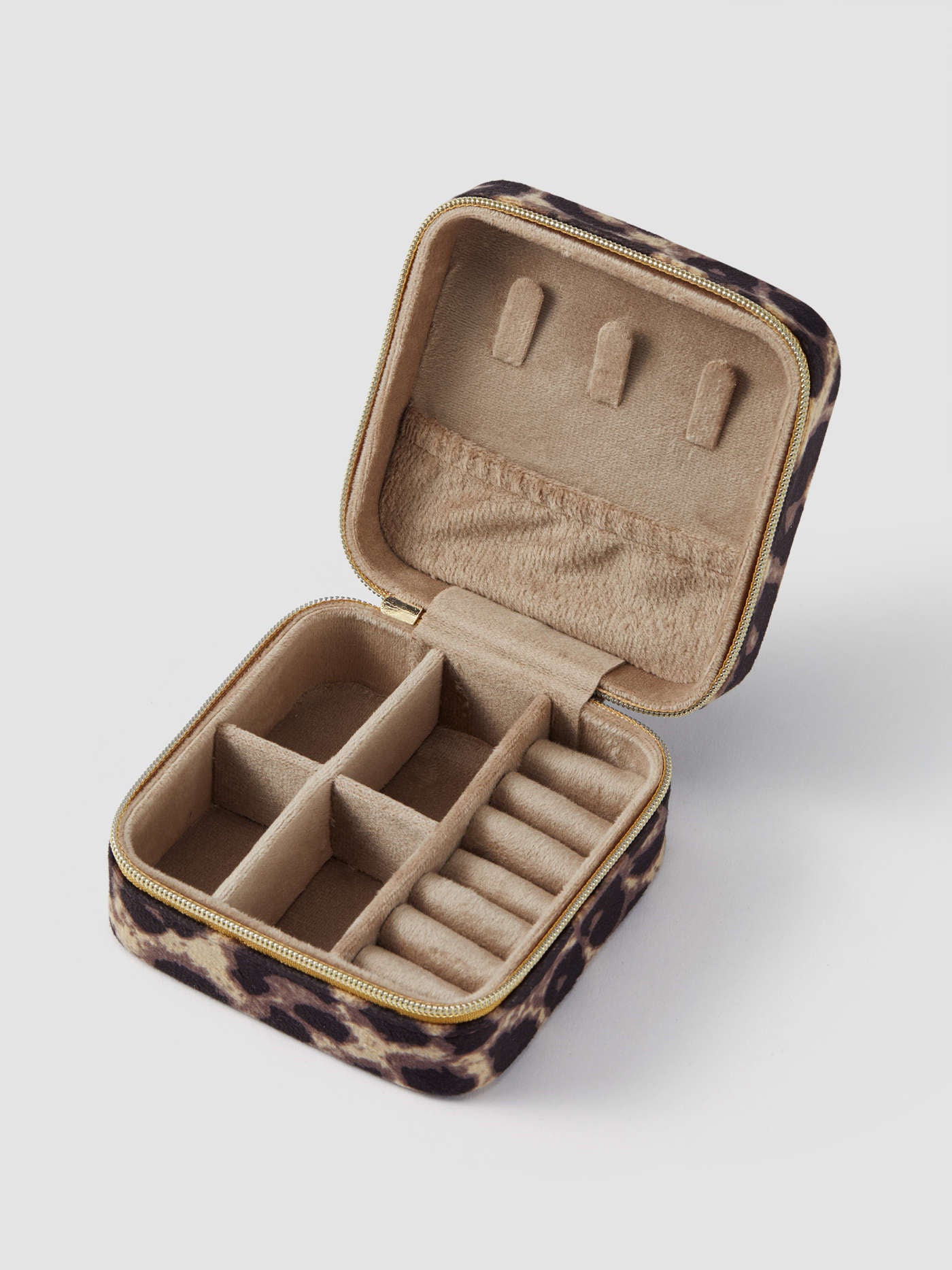 Guarda Joias Leopardo è un porta gioie vellutato con vari spazi di archiviazione. Essendo piccolo e compatto è ideale da portare in viaggio.